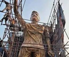 La imponente y gigantesca estatua de 21 metros con la que India homenajeará a Messi durante su visita: trabajaron 45 personas durante 27 días