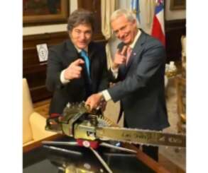VIDEO. ¿Hará recortes sociales en Chile? Kast le siguió "el juego" a Milei y posó con una motosierra y asintió cuando dijo "¡viva la libertad carajo!". La motosierra es el símbolo de los recortes sociales