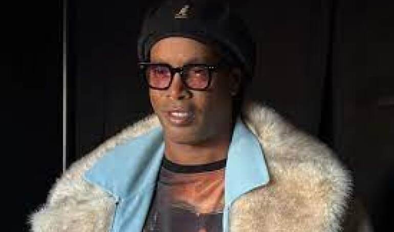 Ronaldiho apareció con un enorme abrigo de piel sintética y una camiseta estampada con su propia imagen en un fondo amarillo. Sobre ella, reposaba una chaqueta beisbolera y pantalones vaqueros 'oversize', con deportivas a tono.
