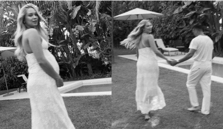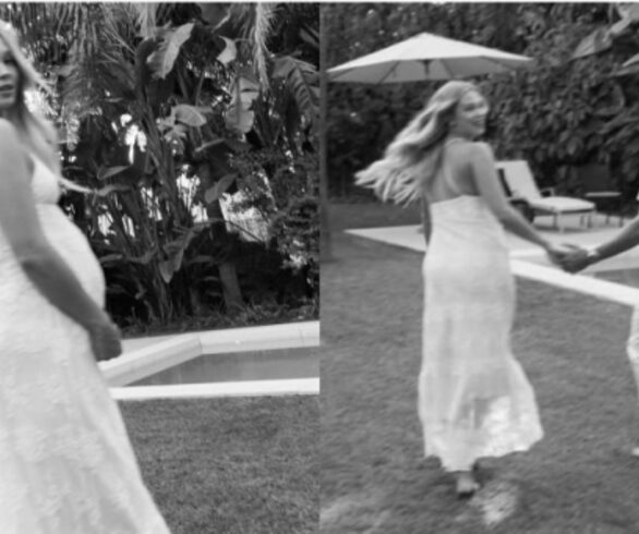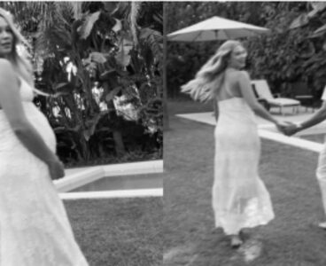 En las postales, la joven de de 25 años dejó al descubierto su avanzado embarazo.