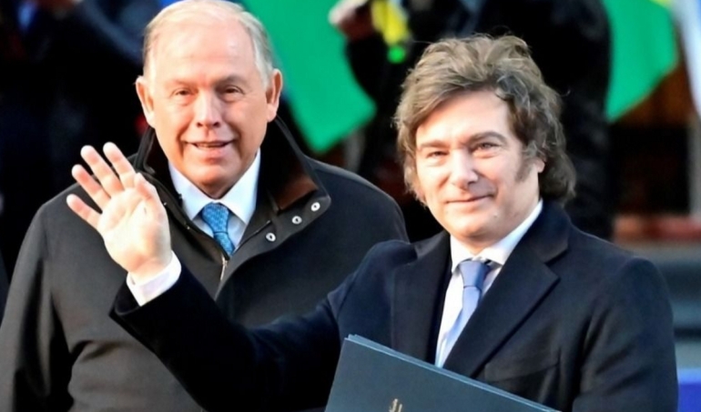 El canciller argentino Gerardo Werthein, en la foto junto a Milei, presentó el miércoles su renuncia en el marco de los ajustes en el gabinete de ministros que planea el presidente Javier Milei ante las elecciones legislativas del próximo domingo.