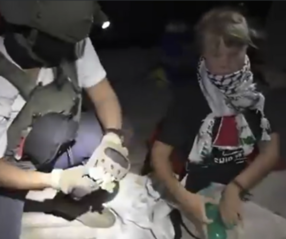 De acuerdo con The Guardian, el periodista Lorenzo D'Agostino, quien también era parte de la flotilla, relató que Greta Thunberg fue "envuelta en la bandera israelí y exhibida como un trofeo".