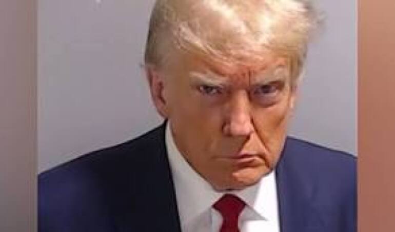 Es la cuarta vez que Trump tiene que presentarse en un edificio de la administración de justicia - federal o estatal - de EEUU para ser oficialmente "arrestado", que es como se conoce en ese país al proceso de fichar e identificar a un presunto delincuente. Pero ha sido la ocasión más dramática. En torno a las 3 de la madrugada de España, las autoridades de Fulton divulgaron una foto para la Historia: la del rostro de Trump ante una pared con el escudo oficial de las fuerzas de seguridad del condado. Ha sido la primera vez que un ex presidente es sometido a la foto de la infamia -el mughsot, o 'foto de los criminales'- en la Historia de Estados Unidos, ya que en los otros tres 'arrestos' de Trump las autoridades evitaron hacerle pasar por esa humillación.