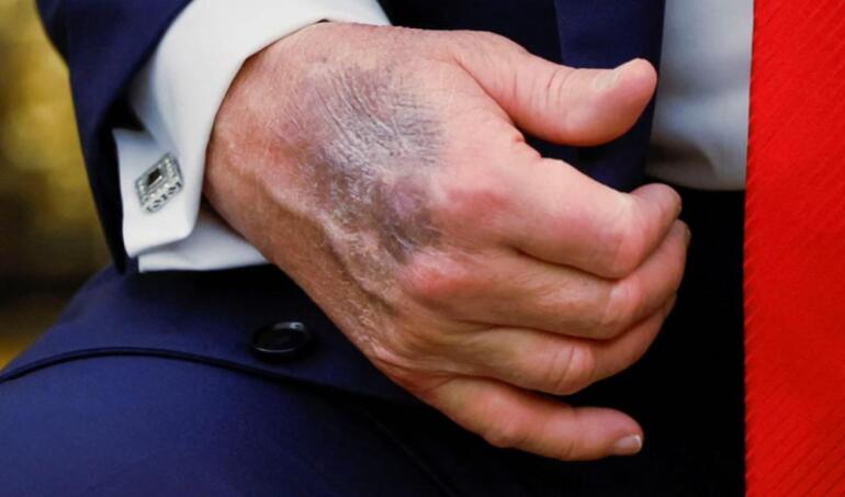 A lo largo de una serie de actos, la semana pasada, Trump, de 79 años, apareció con decoloración o leves moretones en el dorso de la mano izquierda, además del moretón más persistente en la mano derecha que ha sido visible durante meses.