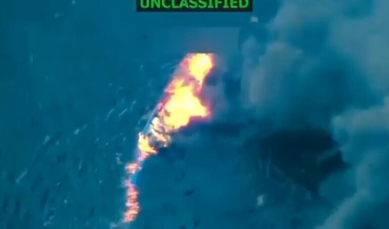 El mandatario acompañó su mensaje con un video en blanco y negro en el que se observa una lancha inmóvil en el mar, y luego el impacto de un misil que la destruye totalmente.