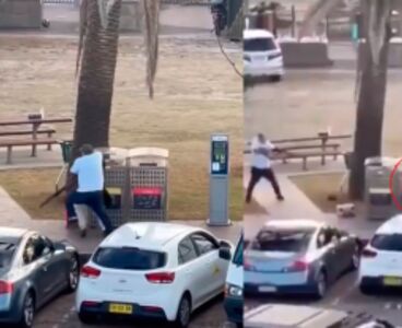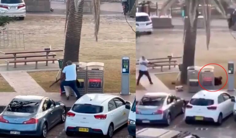 Una persona anónima, calificado como un heróe por las autoridades australianas, se abalanzó sobre uno de los terroristas y lo desarmó tal como se ve en la imagen del video.