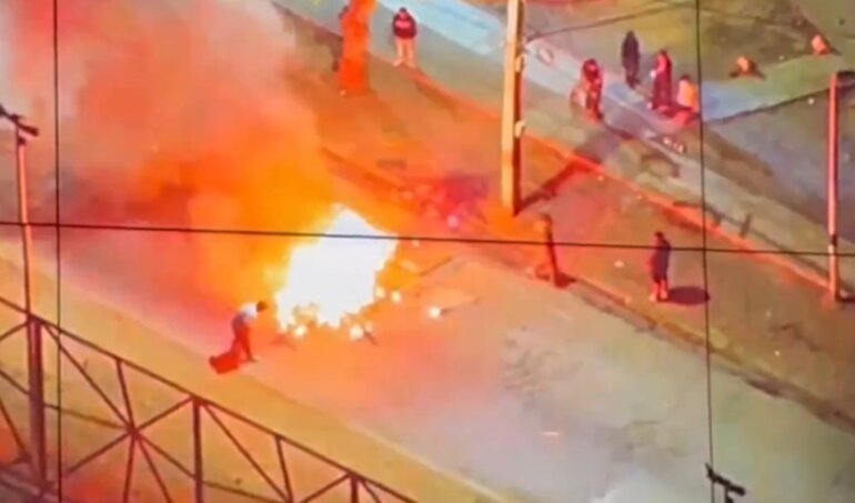 Además, se percibieron impactos de bala y una gran cantidad de fuegos de artificio, algunos de ellos lanzados de forma directa a personal de Carabineros desplegado en el sector.
