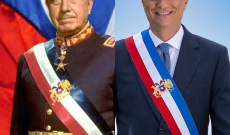 Un detalle que no pasó desapercibido es que en la imagen se ve a Kast portando la tradicional banda presidencial, pero con el escudo de Chile.