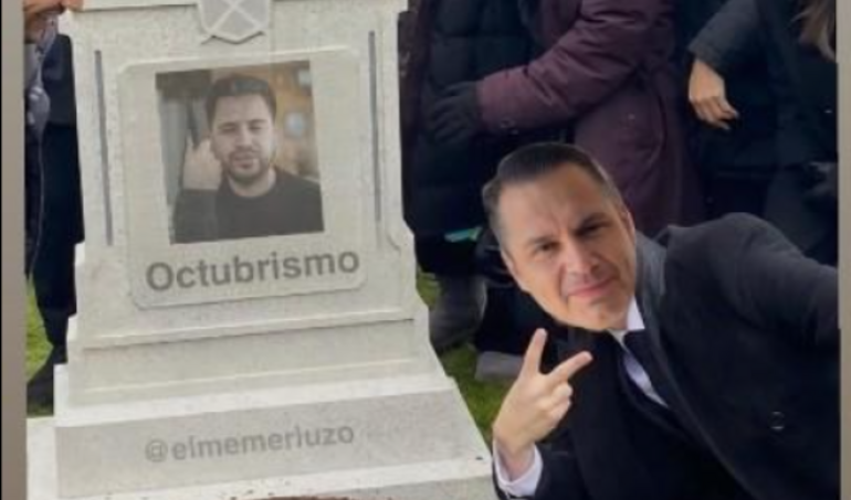 Crespo, a través de su cuenta de Instagram, compartió una imagen donde se lo ve celebrando encima de una tumba con una lápida con la imagen de Gustavo Gatica, diputado electo a quien dejó ciego con el disparo de su escopeta antidisturbios, además de la frase “QEPD octubrismo”.