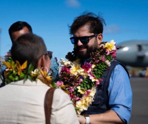 El presidente Gabriel Boric arribó este miércoles a Rapa Nui para encabezar su primera gira oficial por el territorio insular de la Región de Valparaíso, en medio de diversas críticas.