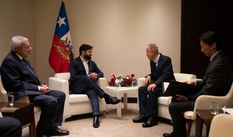 Presidente Boric se reúne con ex secretario general de la ONU en Seúl y abordó desafíos globales y candidatura de Bachelet
