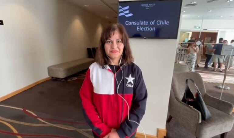 "Estoy muy emocionada. Me levanté muy temprano para venir a votar porque amo Chile", fueron las primeras palabras de la primera compatriota en emitir su voto en este balotaje.