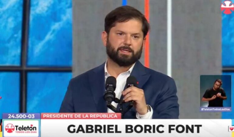 En ese sentido Boric hizo un llamado a aportar "no por miedo, si no que por amor", ya que "la Teletón hace bien".