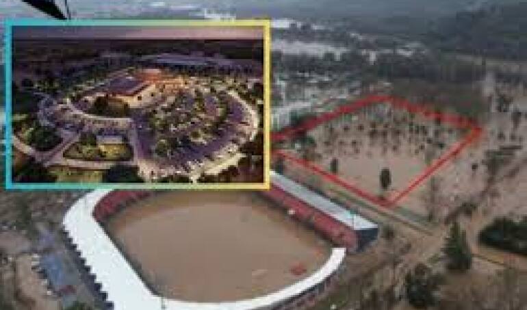 Foto Portada: El lugar donde se está construyendo el nuevo Casino de Talca. Hace tres años quedó absolutamente inundado por la crecida de los ríos a 70 metros de la construcción