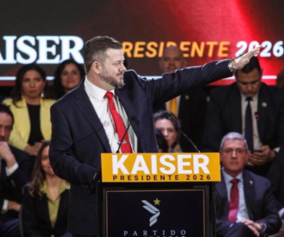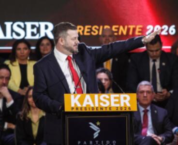 En medio del acto, que estuvo marcado por la presencia de Kaiser, candidatos al Parlamento de su partido y distintas bandas musicales, se entonó el Himno Nacional.