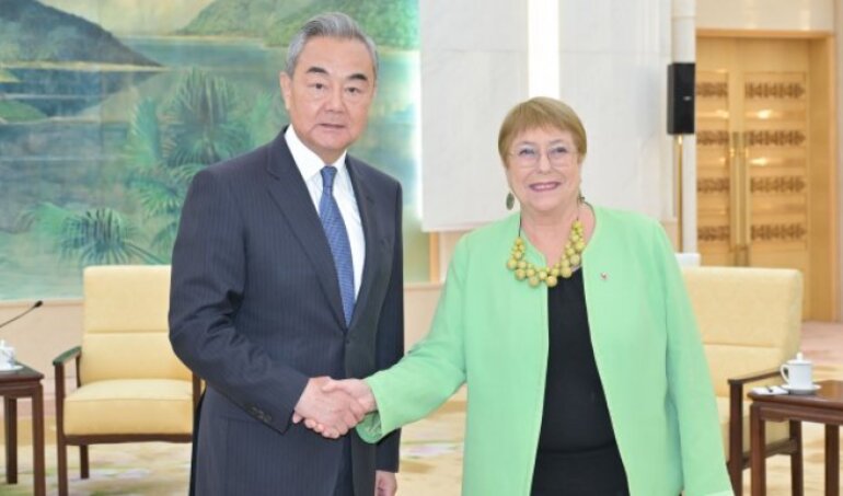 Wang manifestó que Bachelet es "una estadista de renombre mundial y una amiga de larga data del pueblo chino". Además, le expresó su esperanza de que ella "continúe con sus esfuerzos para apoyar la misión de las Naciones Unidas y contribuir a la paz y estabilidad mundiales", según el comunicado difundido por China.