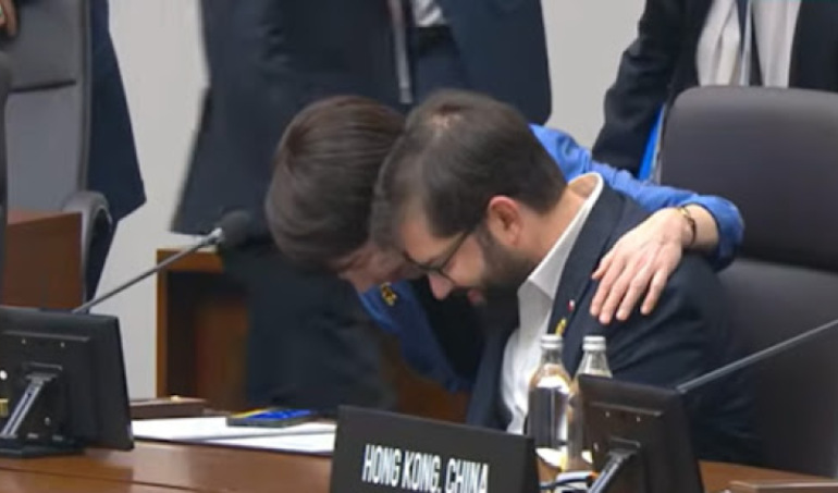 Especialmente llamativo fue el gesto de cercanía que Takaichi compartió con Boric, junto al que conversó de forma desenfadada mientras mantenía el brazo en su hombro o tocaba su espalda, un contacto muy poco habitual entre los japoneses fuera de un contexto de cercanía y afecto personal.