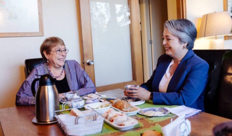 Jara contó que “la presidenta Bachelet, al igual que el día de hoy, muchas veces ha tenido la enorme gentileza de compartirme su experiencia. Una líder no solo nacional, sino que también mundial, lo cual me parece siempre algo muy necesario, pero además le estoy muy agradecida”.