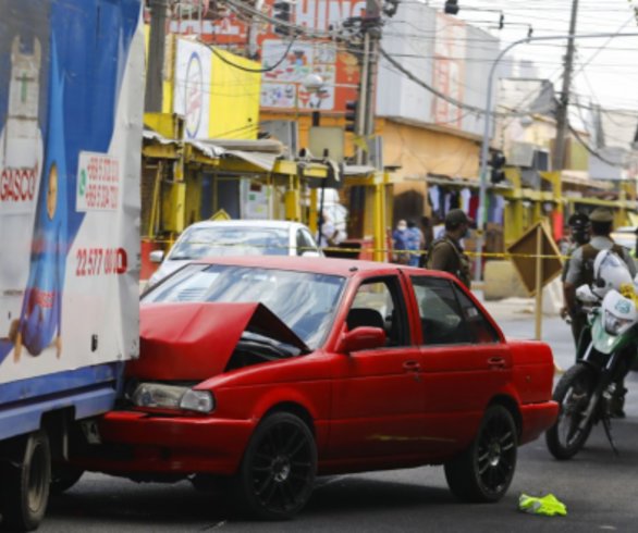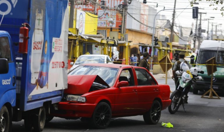 El vehículo finalmente chocó con un camión tres cuartos, mientras que el funcionario terminó con lesiones. Debido al procedimiento se registra una gran congestión en la zona.