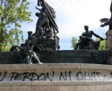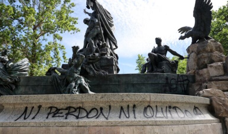 A un día de ser entregada, la Fuente Alemana del Parque Forestal fue vandalizada con un grafiti que dice "Ni perdón ni olvido".