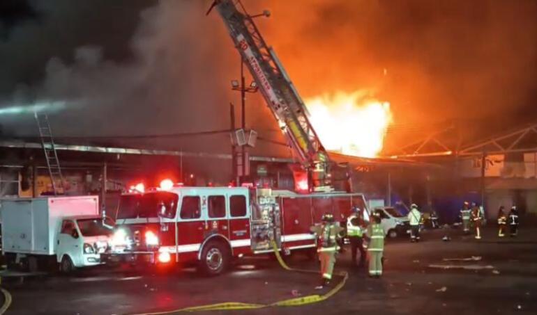 Un violento y gran incendio afectó a más de 70 locales comerciales en La Vega Central de Santiago, de acuerdo con la alerta de Bomberos.