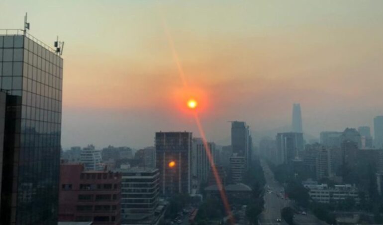 Diversas comunas de Santiago se vieron afectadas por la presencia de humo, el cual proviene de un incendio forestal que se está desarrollando en San Pedro de Melipilla, donde se han visto afectada cerca de 1.700 hectáreas y cinco casas han sido destruidas.