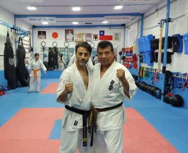 En el marco del sexto Campeonato Mundial de Karate KYOKUSHIN Iko MATSUSHIMA , el periodista y escritor Benedicto Castillo, a la derecha de la foto, obtuvo su cinturón negro, primer dan, en vísperas de cumplir 74 años.