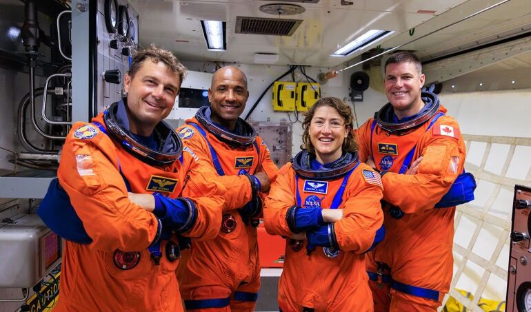 La tripulación, la más diversa en viajar a la Luna, está integrada por tres astronautas -Reid Wiseman, Christina Koch, quien se convirtió hoy en la primera mujer en llegar al satélite, y Victor Glover, el primero de raza negra en lograrlo-, junto al canadiense Jeremy Hansen, el primer astronauta extranjero en una misión lunar de la NASA.